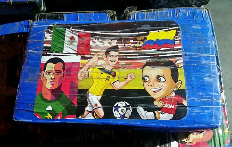 Segundo as imagens da apreensão divulgadas pela Armada, a droga estava envolta em pacotes com retratos de estrelas do futebol, como o colombiano James Rodríguez e o mexicano Javier "Chicharito" Hernández, além de celebridades da televisão.