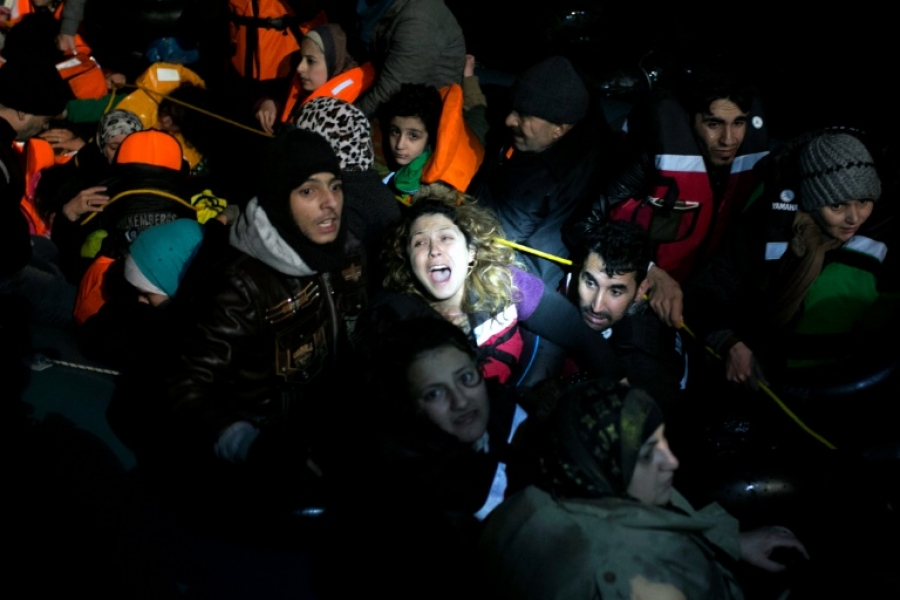 Migrantes em bote inflável são resgatados enquanto tentam chegar à costa grega, em 16 de janeiro de 2016