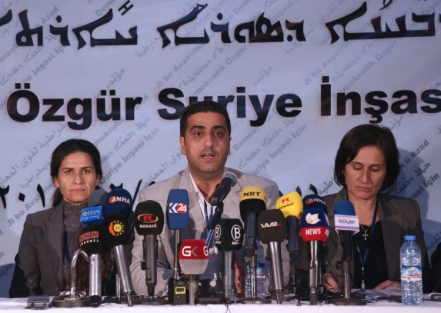 A conferência reuniu sobretudo integrantes do Partido da União Democrática Curda (PYD), excluído da reunião de opositores sírios que aconteceu simultaneamente em Riad.