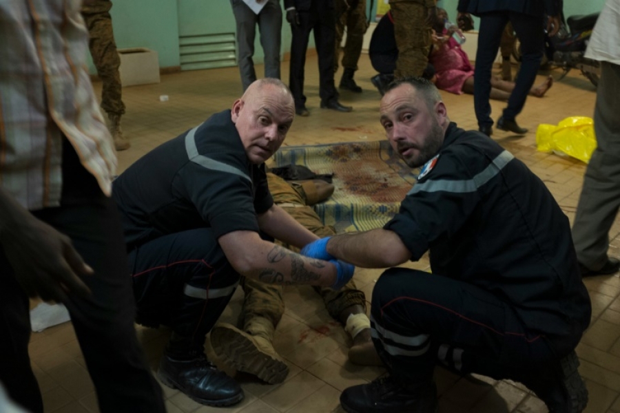 Soldados de Burkina Faso apoiados pelas forças especiais francesas responderam quando homens armados da Al-Qaeda no Magreb Islâmico (AQMI) atacaram o hotel Splendid de quatro estrelas. Ao menos 26 pessoas morreram.