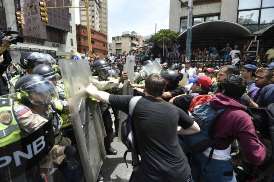 O líder opositor Henrique Capriles e o presidente do Parlamento - de maioria opositora -, Henry Ramos Allup, lideravam a concentração em Caracas, mas diante do cordão de segurança precisaram se retirar em meio a empurrões.