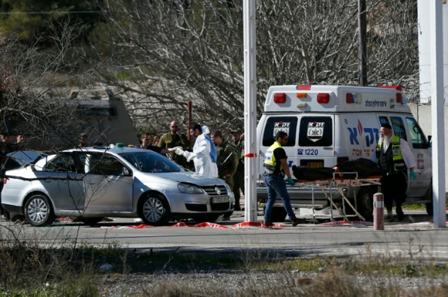 As ambulâncias palestinas não foram autorizadas a recuperar o corpo do palestino que disparou de dentro de um carro vindo de Ramallah, segundo um jornalista da AFP no local.