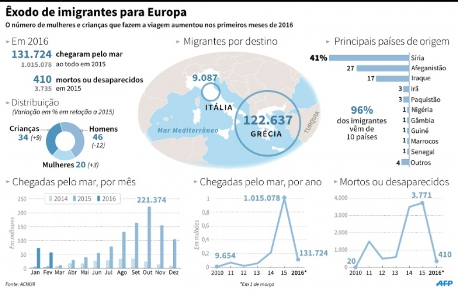 A Grécia, no front na crise de imigração, reconheceu na terça-feira "que não será capaz de gerir todos os refugiados que chegam". Atualmente, o país acolhe 23.000 migrantes.